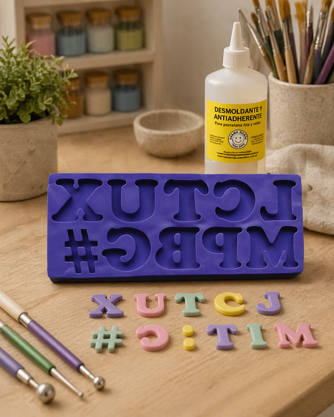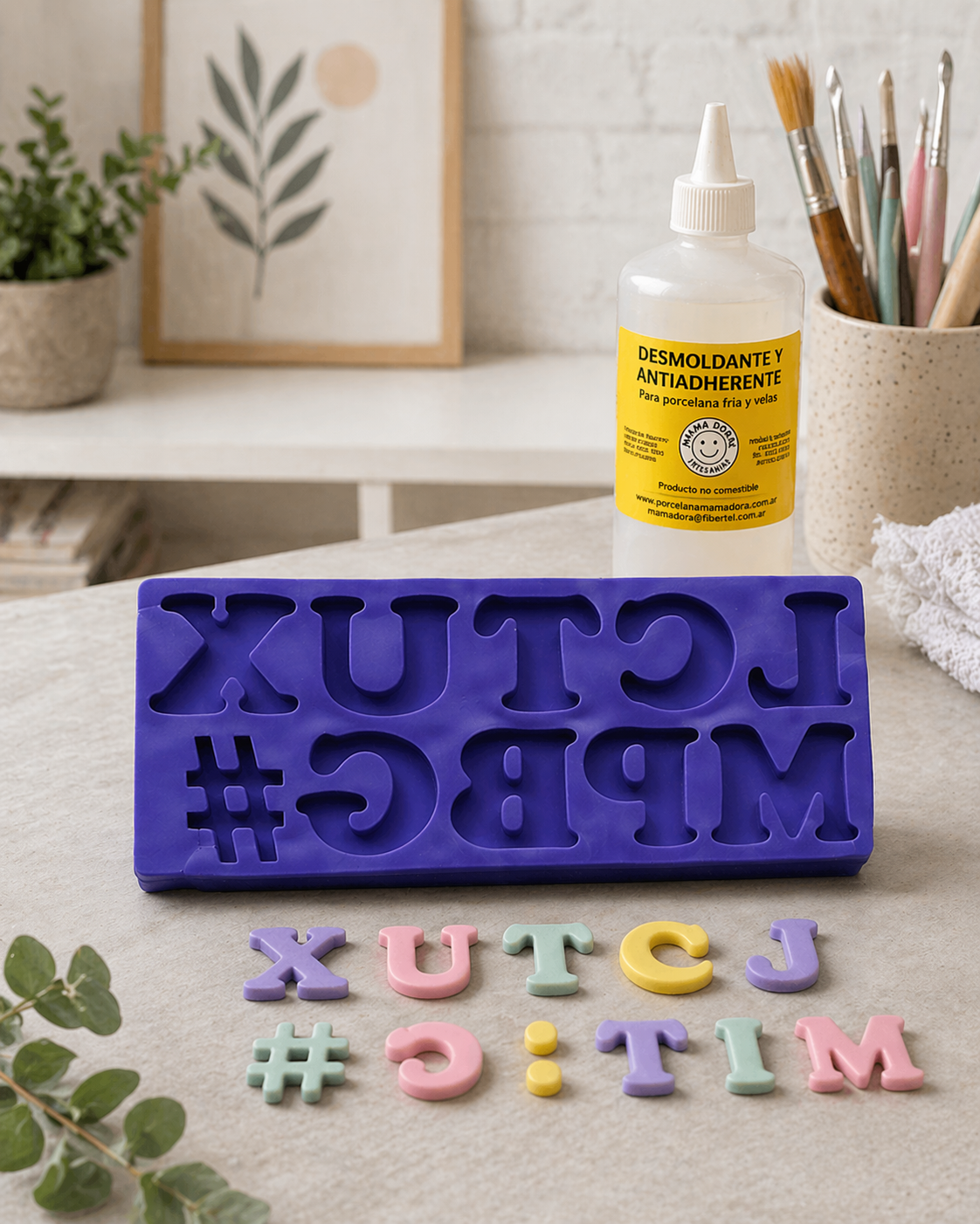 "Para los moldes con detalles muy profundos o letras finitas, podés poner apenas unas gotas del Desmoldante Antiadherente Mamá Dora dentro del molde antes de colocar la masa. Si usás porcelana fría, recordá desmoldar la pieza y dejarla secar sobre una superficie plana o esponja para que no pierda la forma mientras pierde humedad."